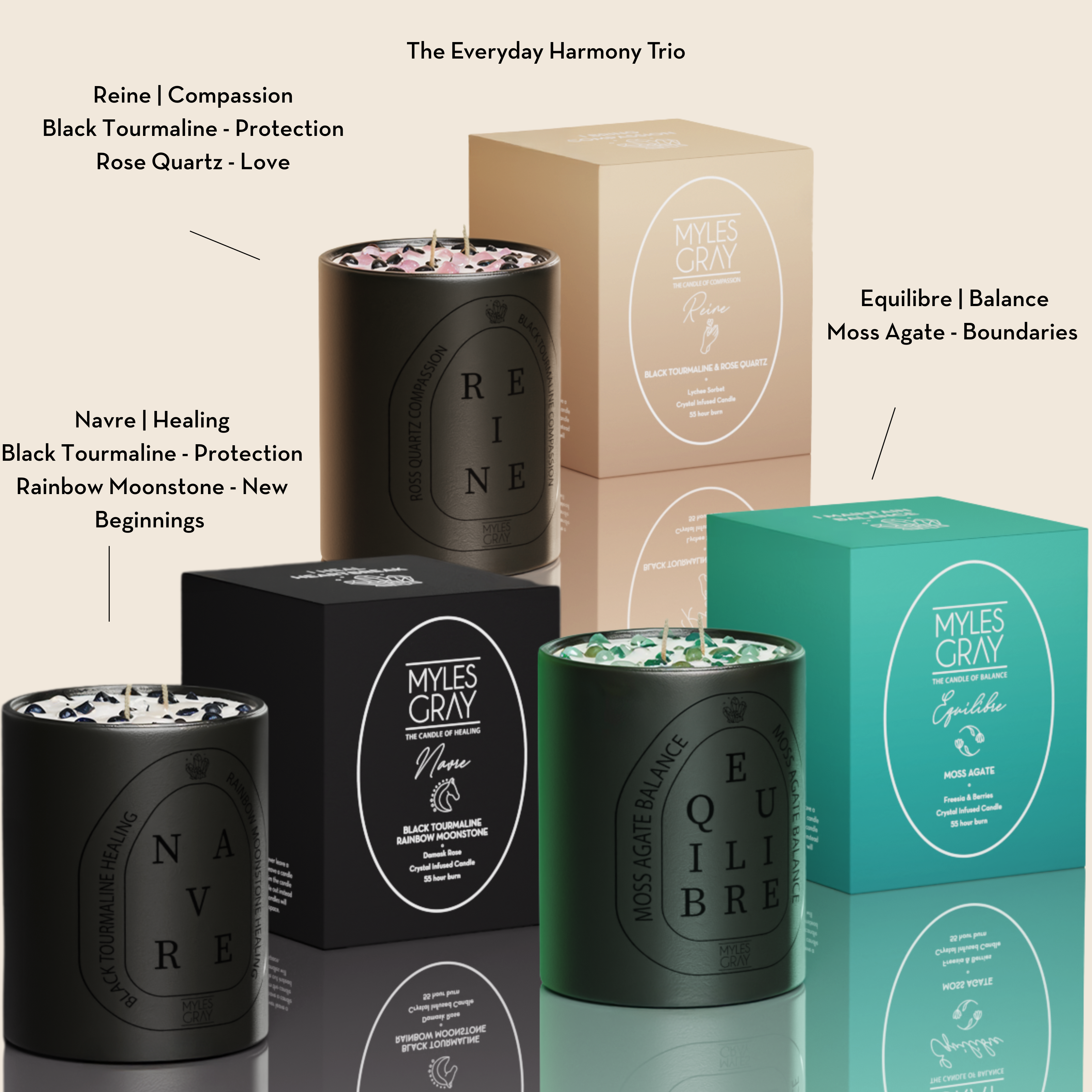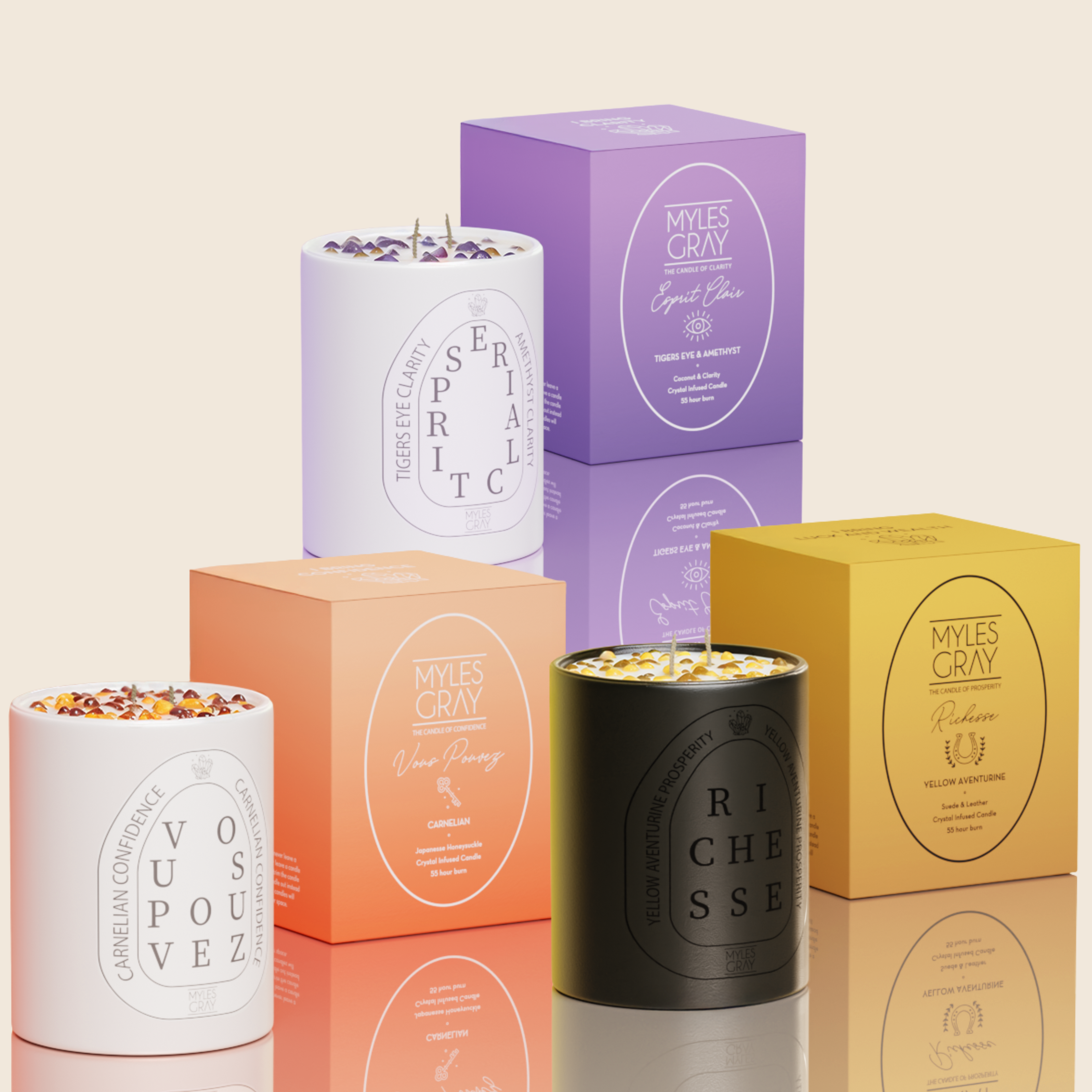 Through our crystal-infused candles and hand-crafted fragrances, Myles Gray promotes emotional healing and inner peace, making it effortless for you to experience the benefits of crystals in your daily life. You can read more about our story by clicking the link below.