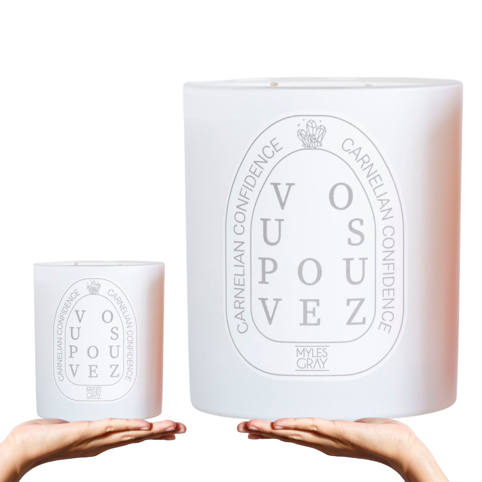 On the product page, scroll down and pick your desired scent from the dropdown menu. This completes your candle’s energy signature. -